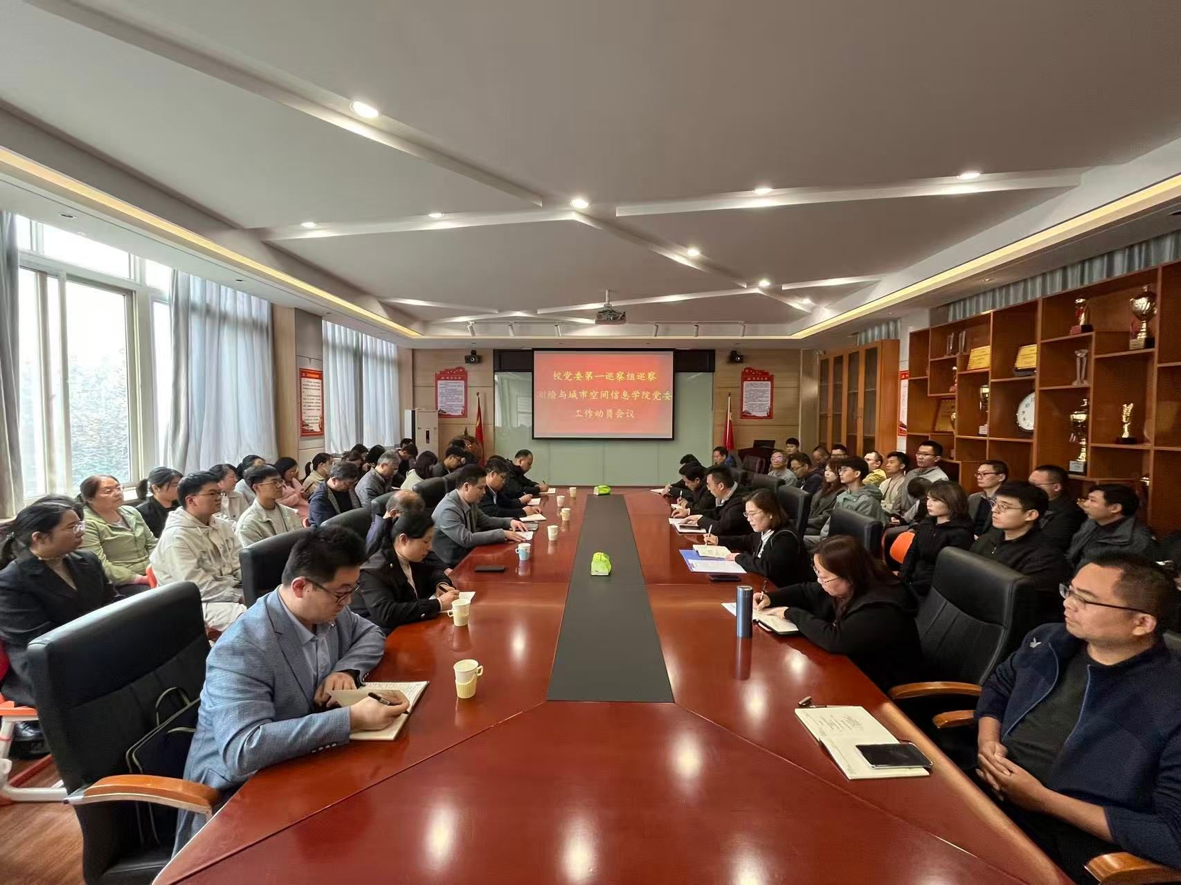 根据学校党委巡察工作统一部署,10月14日下午,校党委第一巡察组巡察测绘与城市空间信息学院党委工作动员会议在建贤楼B209会议室召开。校党委第一巡察组组长李涛飞及巡察组成员,测绘与城市空间信息学院领导班子成员、全体教师及学生代表参加会议。会议由测绘与城市空间信息学院院长鲁春阳主持。