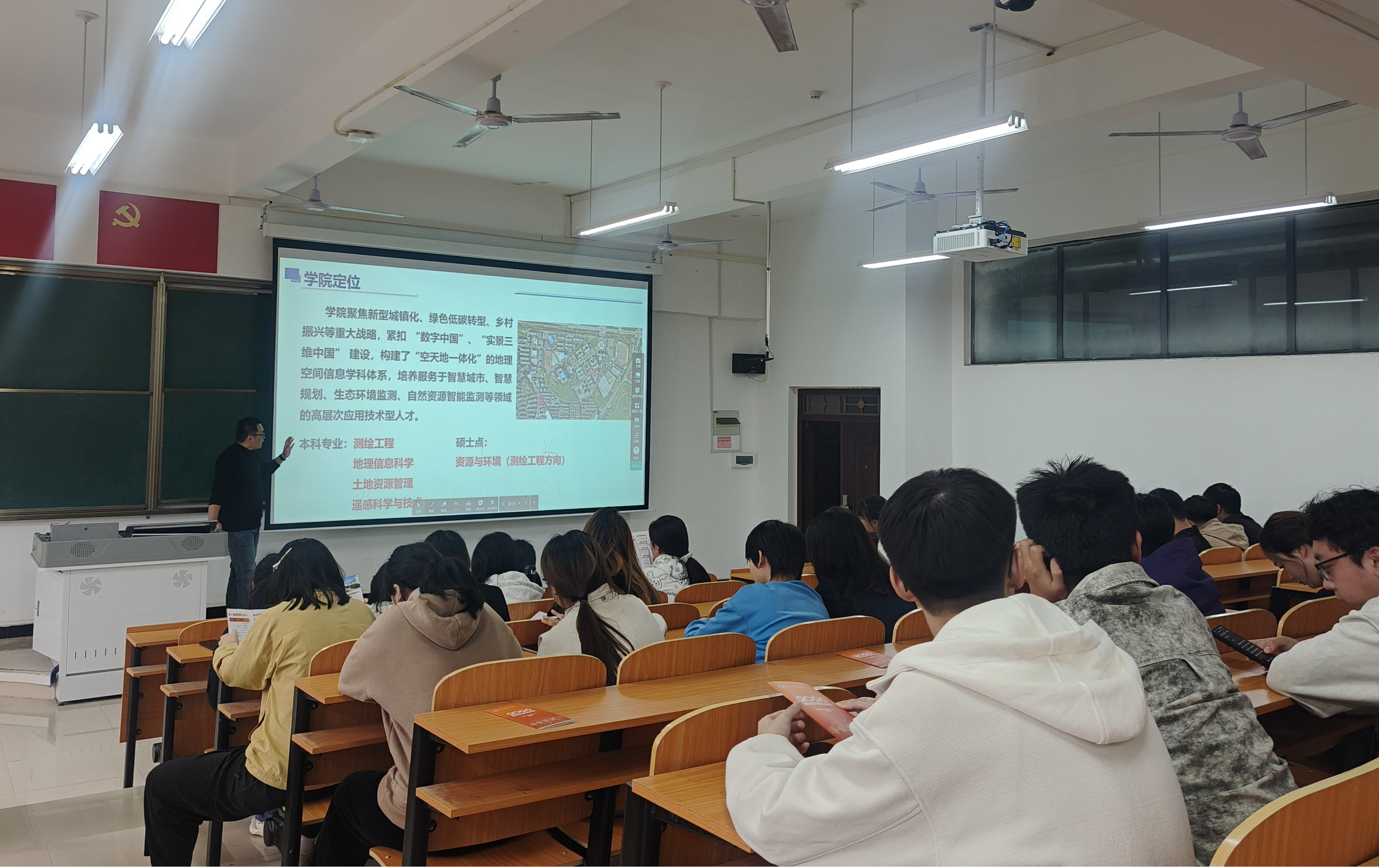 10月15日,学院副院长杨锋、土地资源管理系主任马战林一行前往黄河交通学院,进行了首站招生宣讲。宣讲人员向黄河交通学院的学子们详细介绍了我院资源与环境硕士点(测绘工程领域)的主要研究方向、培养特色优势、指导教师团队等基本情况,并就同学们关心的招生政策、报考条件、考试科目、就业前景等问题进行了耐心细致的解答。