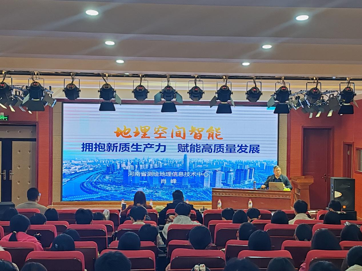 11月20日下午,河南省测绘地理信息技术中心党委委员、副主任肖峰应邀至我校作题为《地理空间智能:拥抱新质生产力,赋能高质量发展》的学术报告。测绘与城市空间信息学院党委书记武伯军、副院长潘传姣、副院长杨锋和100余位师生共同聆听了报告。报告会由杨锋主持。