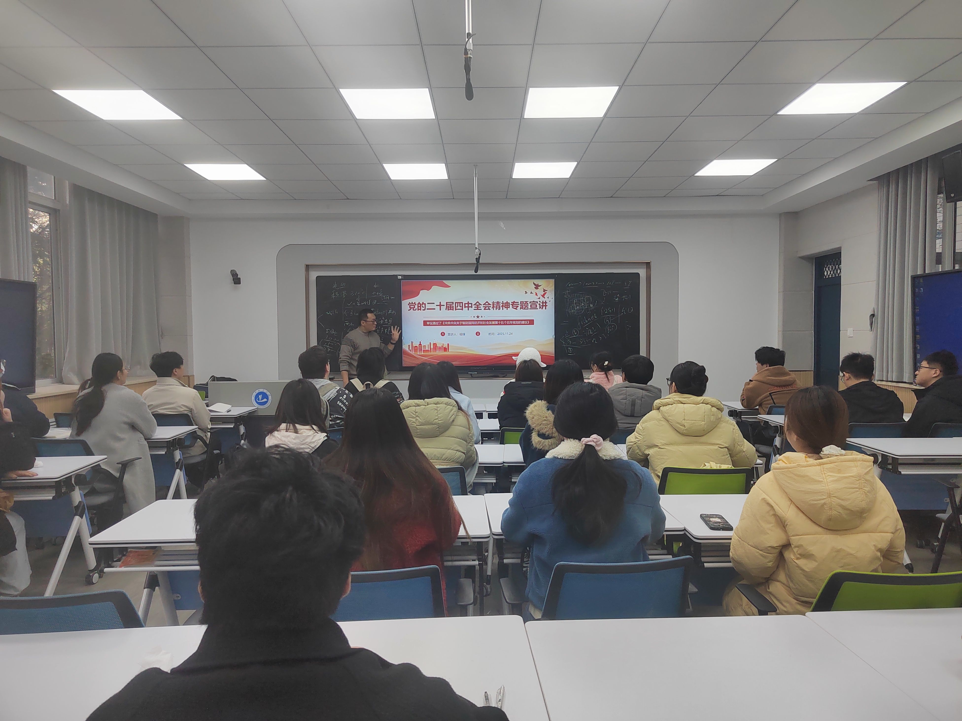 11月26号,我院举行专题学习会,学院副院长杨锋为土地资源管理和地理信息科学学生干部及部分学生代表深入宣讲党的二十届四中全会精神。